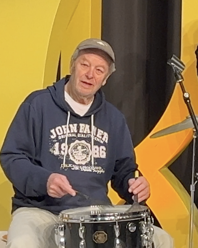 De 82 Jarige Louis Blonk aan aan talloze producties meegewerkt. Als slagwerker in de jaren '60 van René & his Alligators, Willy en de Giants. Na zijn conservatorium opleiding in Den Haag was hij onder andere als slagwerker actief in het Residentie Orkest. De vader van John Engels heeft hem nog de kneepjes van het jazz slagwerk bijgebracht.